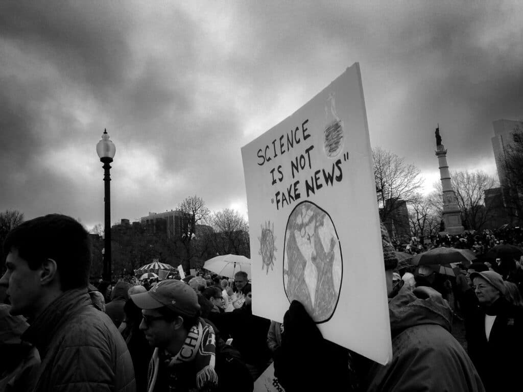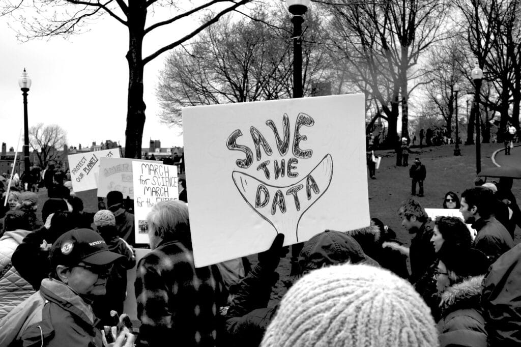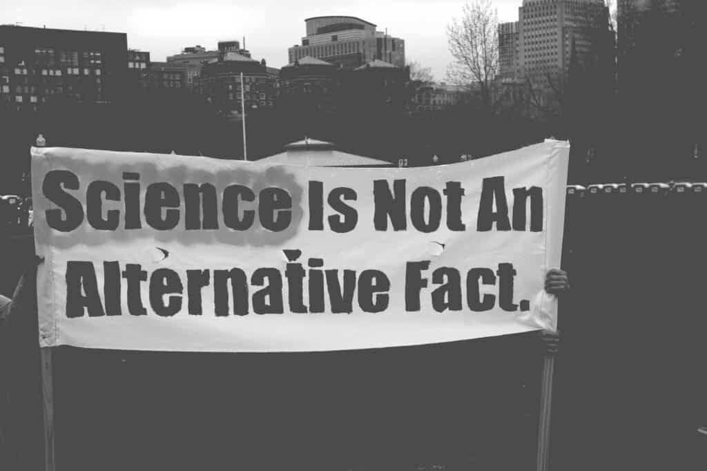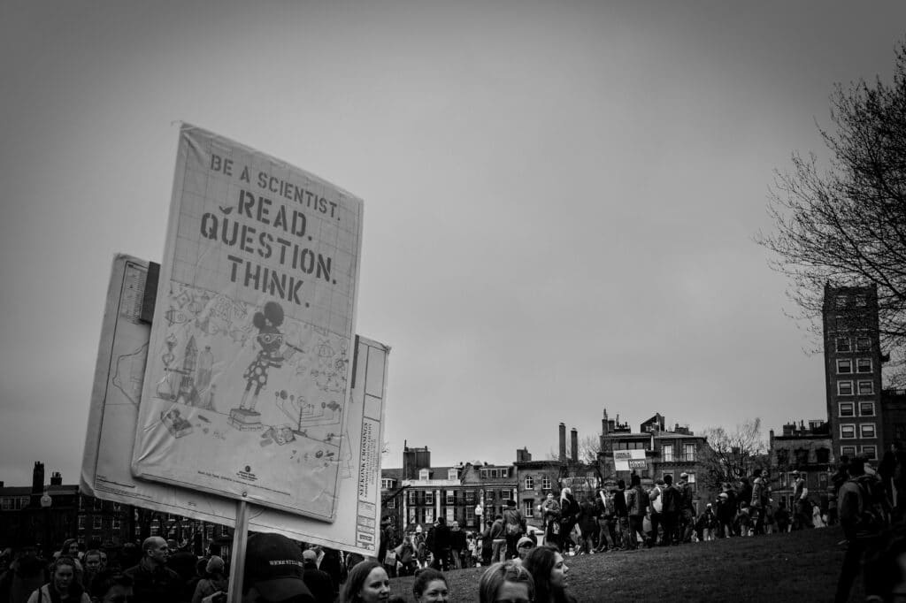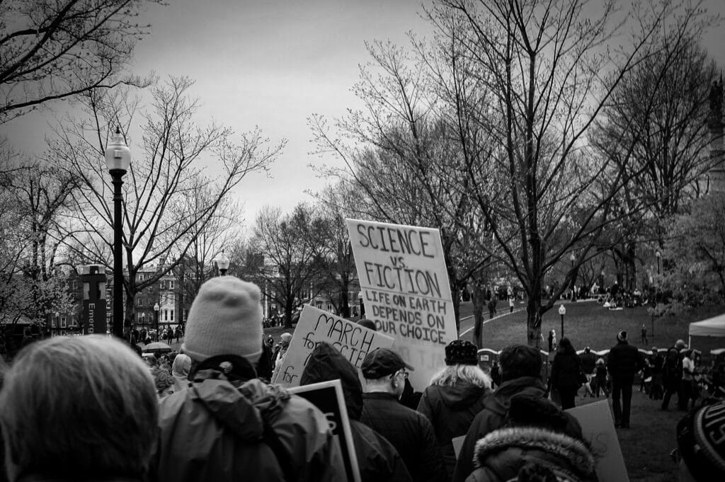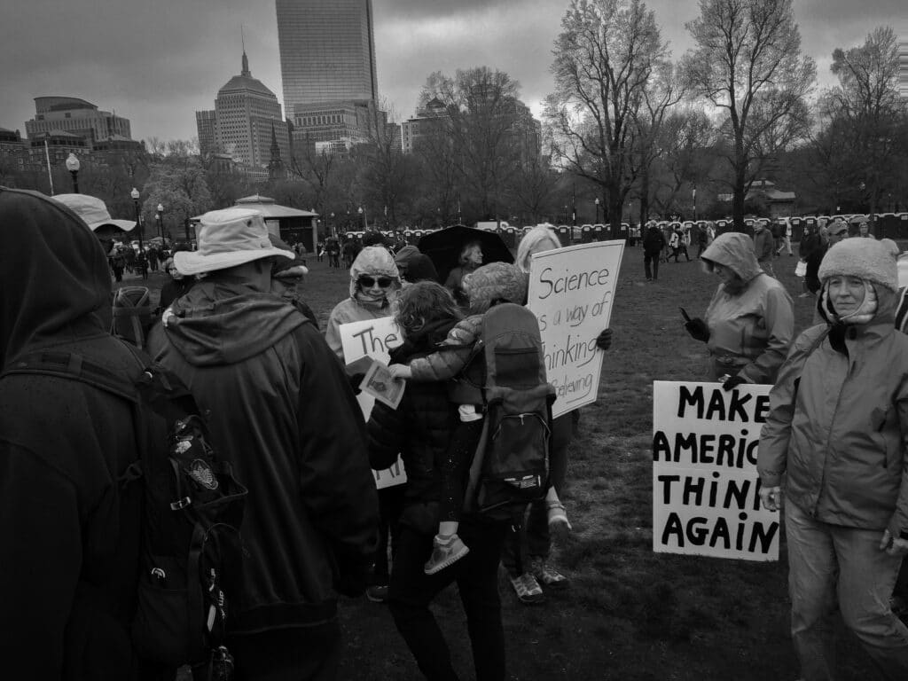 Signs from Boston’s 2017 March for Science in monochrome