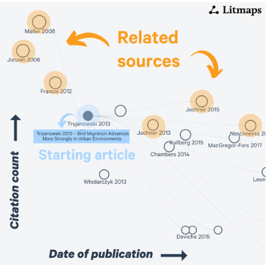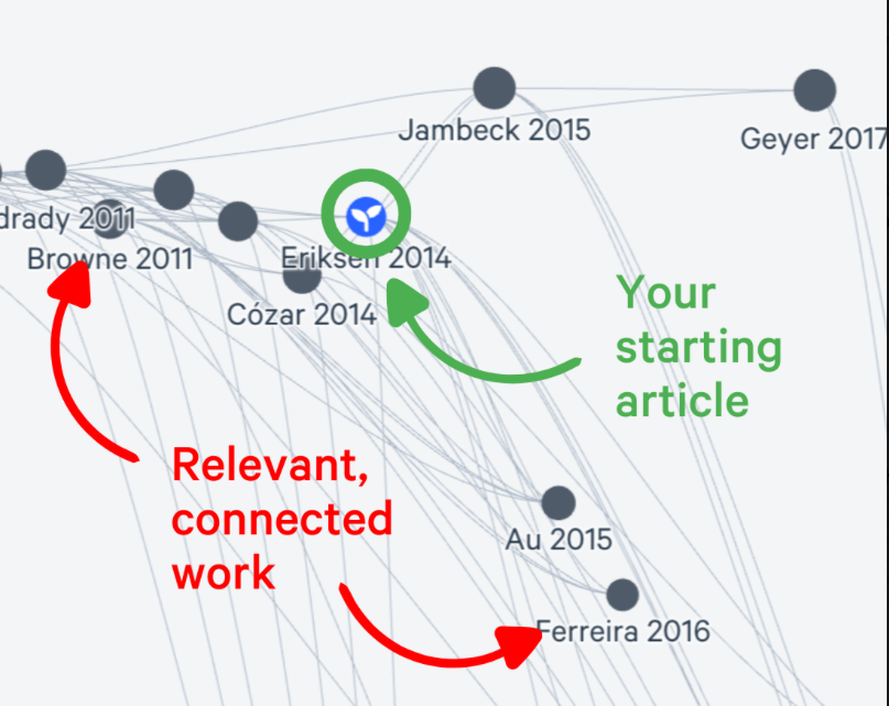 The Litmaps platform uses algorithms that trace citations and references from these primary nodes, branching out to include additional relevant articles that cite or are cited by the initial publications. It’s neither perfect nor meant to be exhaustive, but it provides a different way to look at the landscape.