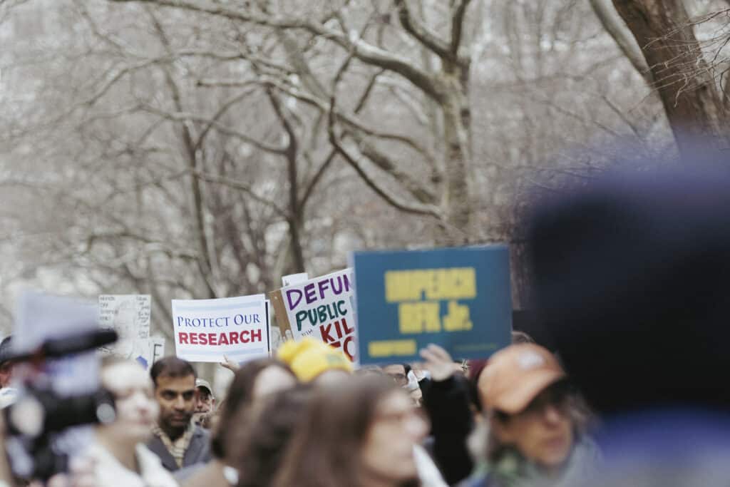NEW YORK CITY – On Saturday, March 7, Stand Up for Science (SUFS) held 26 rallies across the United States, including an event at Manhattan’s City Hall Park. The organization describes its mission as “defend and advance America’s scientific ecosystem.” At the New York rally, participants carried signs addressing vaccines, research funding, and broader science policy debates. This photo essay documents the event and includes excerpts from speakers.