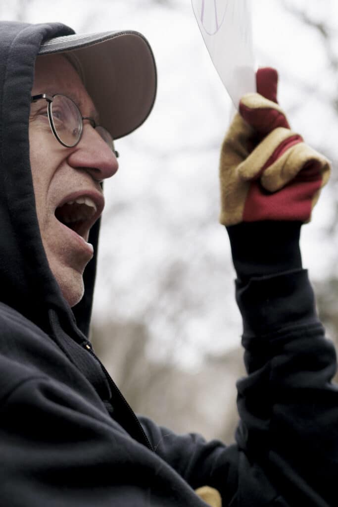 Griffin Gowdy, PhD candidate at Columbia University, spoke at the rally for the second year in a row. His parents, both artists, came to the rally to support him. “When we tell people what he’s doing, that he’s studying this and that at Columbia, they’re so amazed. They can’t believe it,” his mother said proudly. CSML Images//Kenna Beban//March 7, 2026.