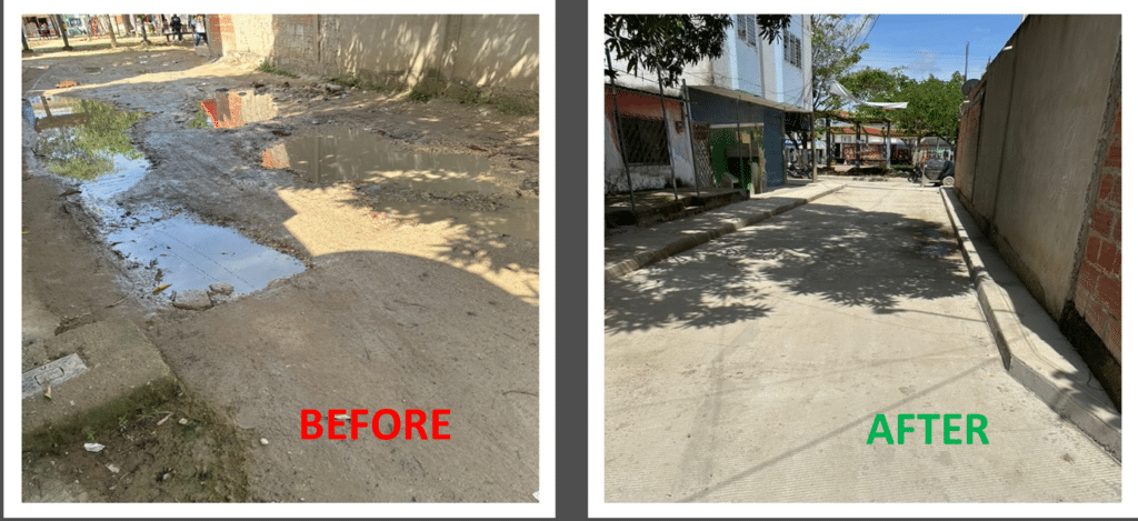 Before-and-after images of streets in Columbia that were part of the Our Voice project. (courtesy of Eduardo De La Vega / Our Voice)