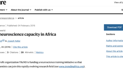 The commentary below was originally published in Nature. The non-profit organization TReND is funding a neuroscience training initiative so that Africa’s scientists can join this rapidly...